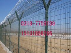 机场护栏网又称作“Y型安全防御护网”,是由V型支架立柱,加强型焊接片网,安全防盗连接件和热镀锌刀片刺笼组成强度和安全防御性级别很高。近年来,被广泛应用在机场,军事基地等高安全场所。注:如果在机场护栏网顶部加装刀片刺丝、刀片刺绳后又很好的增强了安全防护性能。采用电镀、热镀、喷塑、浸塑等防腐形式,具有很好的抗老化、抗晒、耐候等特点。其产品造型美观、花色多样、既起到围栏作用,又起到美化作用。由于具有安全性高、防攀爬能力好,有效防止人为的破坏性拆卸,横向四道折弯加强筋,使网面强度显著增加。
